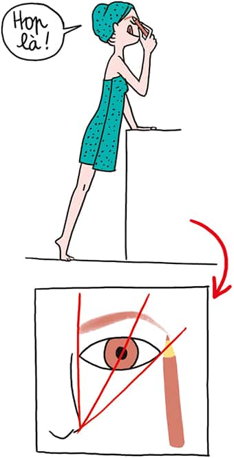 Imagine une ligne passant du coin extérieur de ton nez vers ta pupille : tu obtiens le point de flexion de ton sourcil. Fais un point.