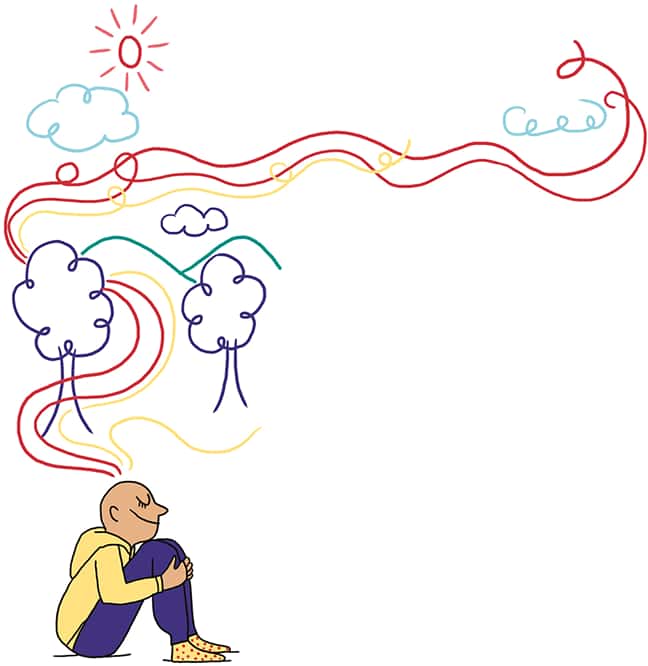 Imagine un paysage familier d'où l'air pourrait venir. Explore-le avec ta respiration : ses couleurs, ses formes, ses sons. Imagine-toi y faire quelque chose.